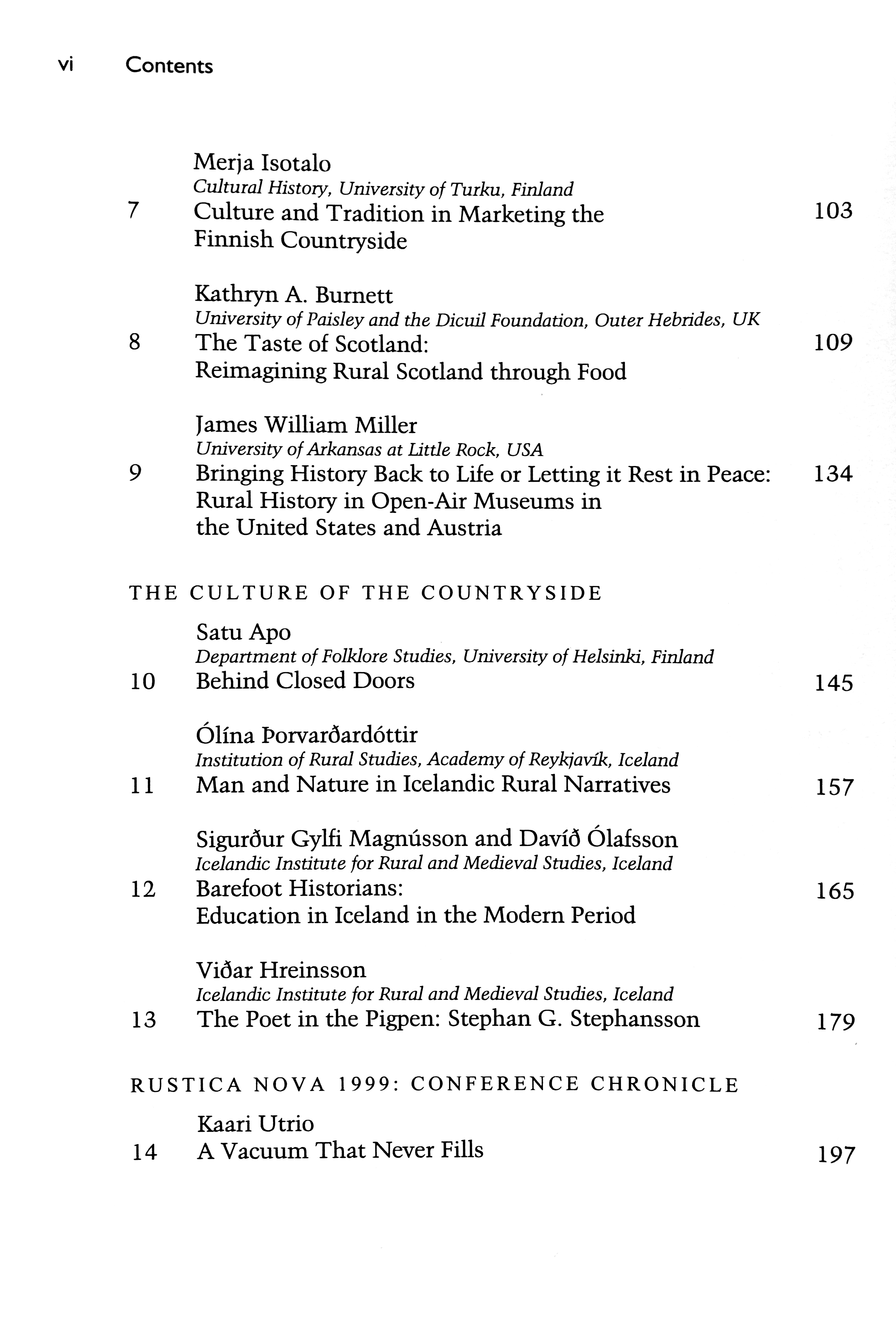 2. (Ed. with Erik Tirkkonen) Rustica Nova: The New Countryside and Transformations in Operating Environment (Publications of the Institute of History Nr 17, Cultural History, University of Turku, 2002).